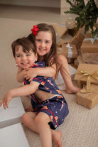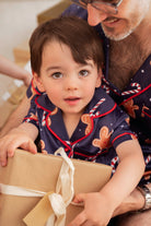 Our adorable Summer Mini short sleeve top w. drawstring shorts in limited edition Christmas print & contrast piping can be made extra personal w. your choice of name or initials embroidery.
