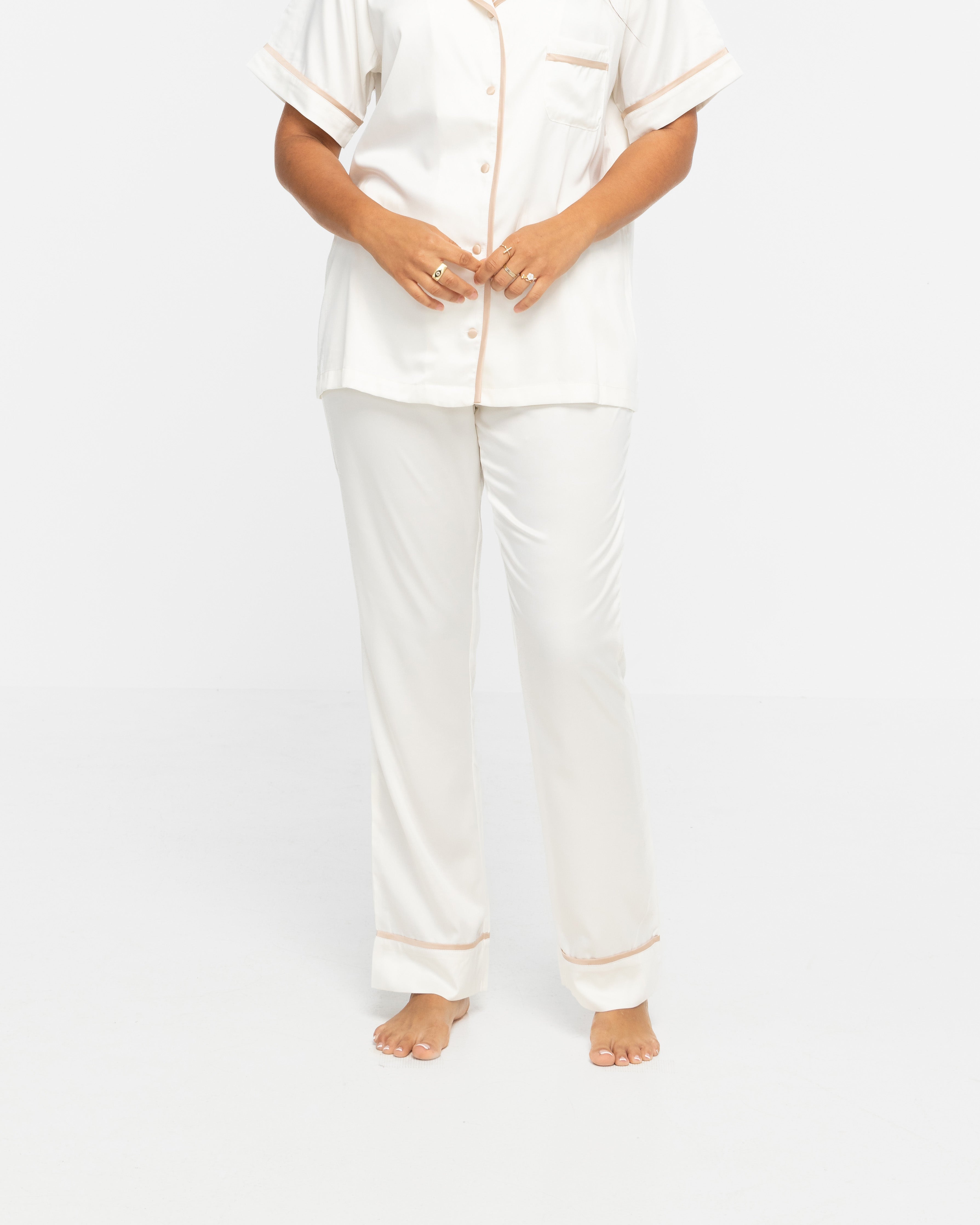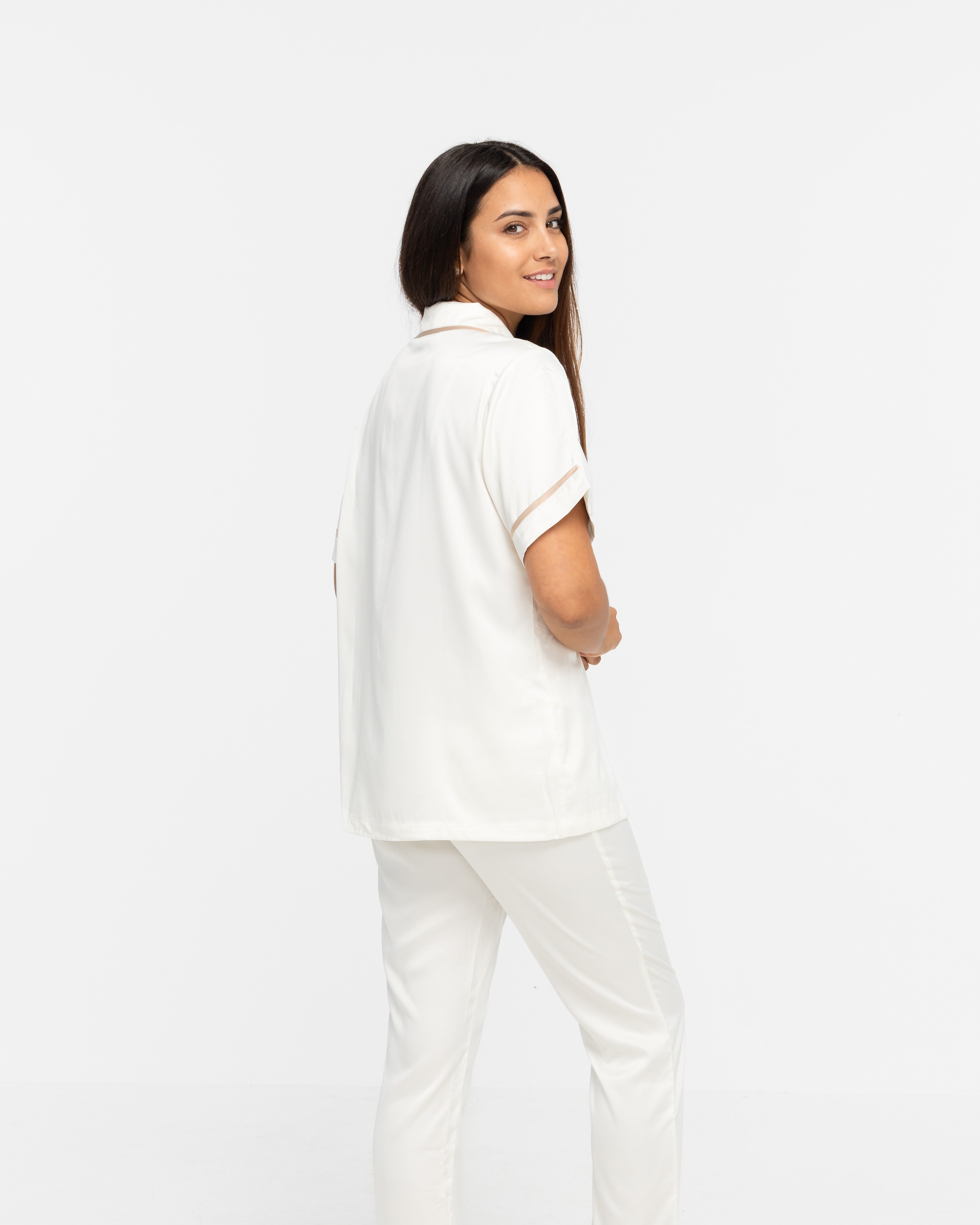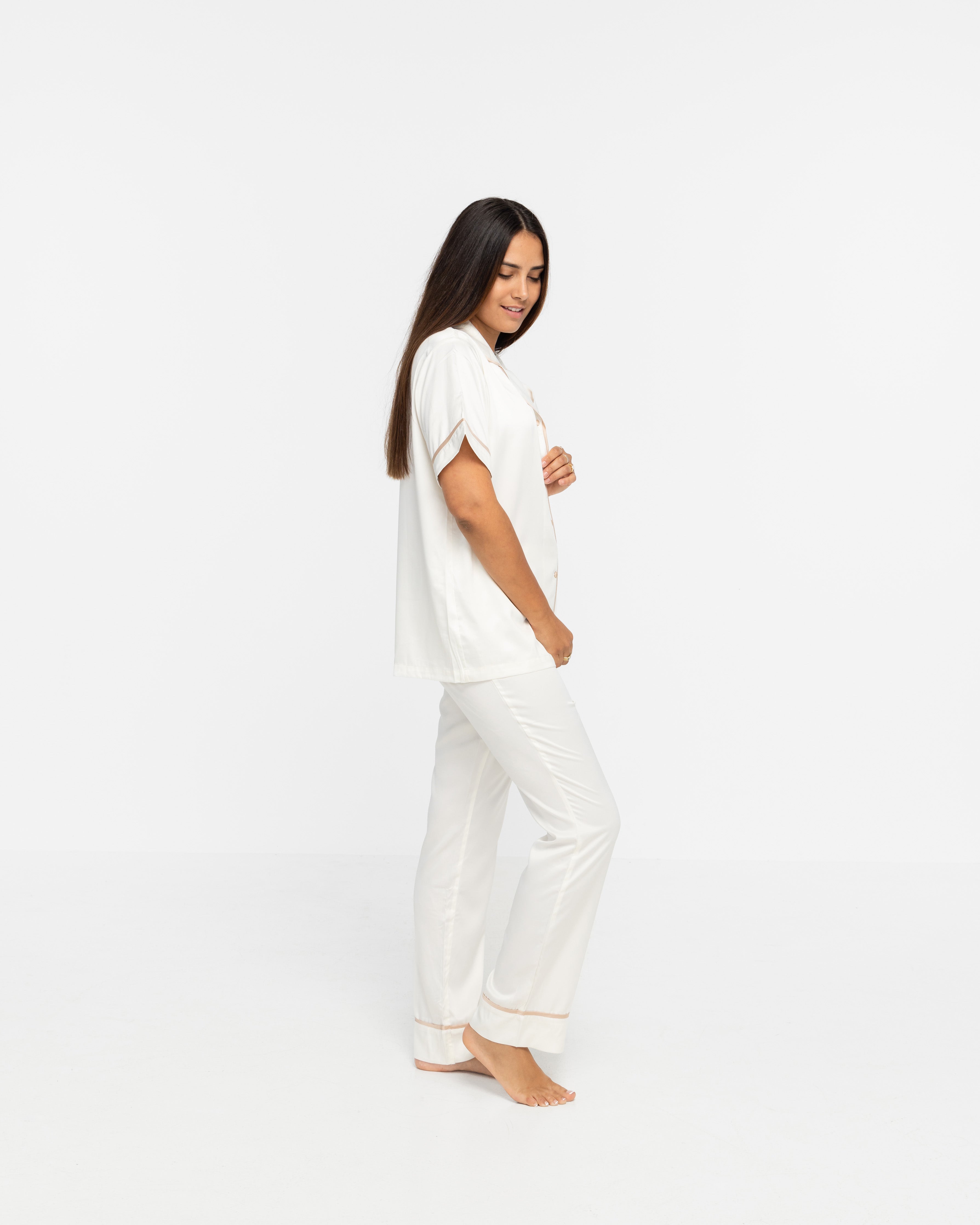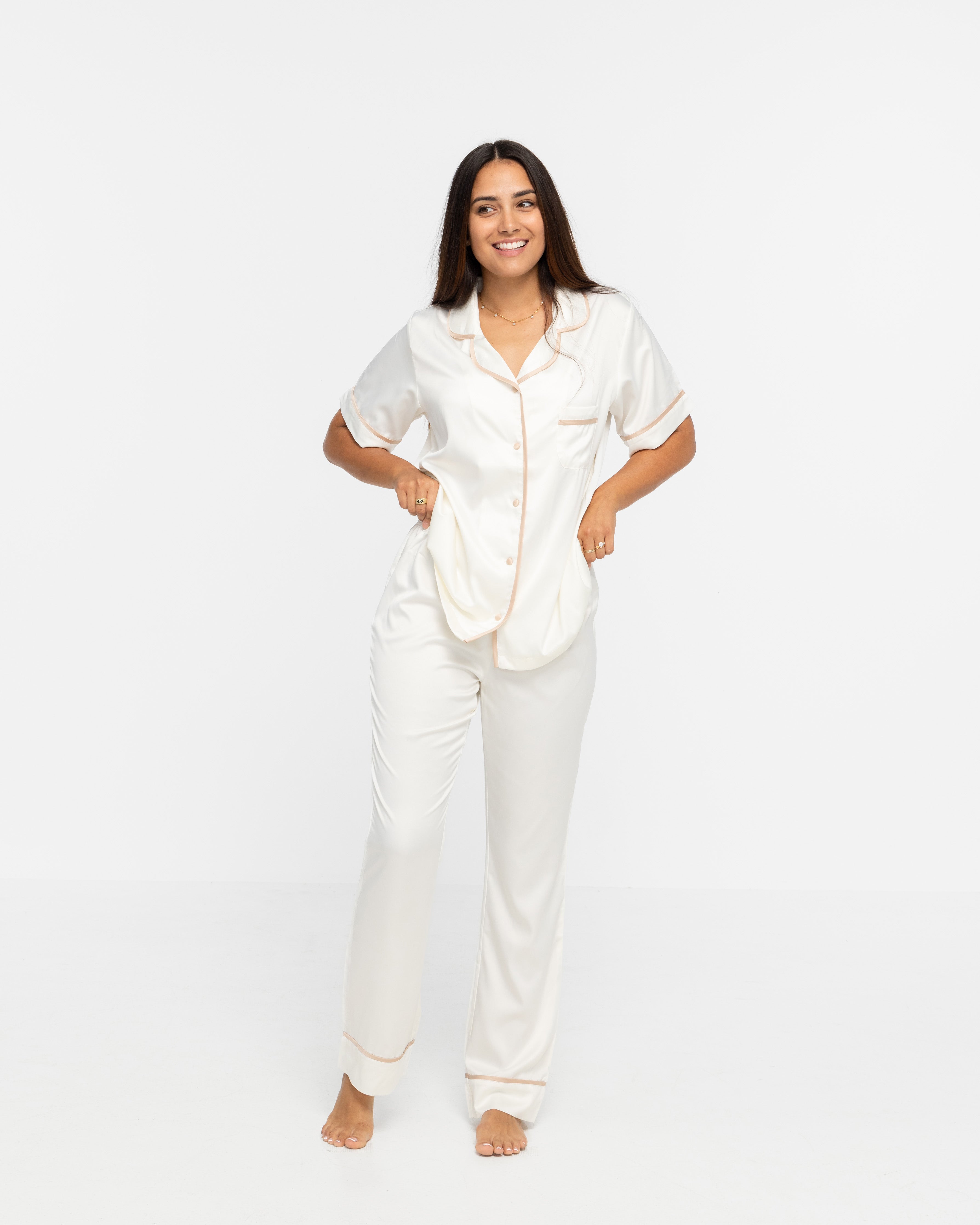 - Sleepwear may appear white on some screens but is an ivory colour