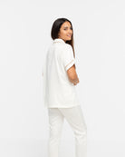 HELLO NEW! Perfect for the cooler months, our classic Autumn W. The Enemy short sleeve top w. drawstring pants in ivory and tan contrast piping can be made extra personal w. your choice of name, initials or emoji embroidery.