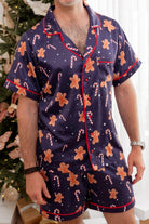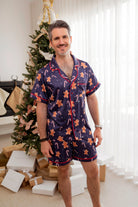 Our classic men's set now comes w. short sleeve top & drawstring shorts in limited edition Christmas print and contrast piping can be made extra personal w. your choice of name or initials embroidery.