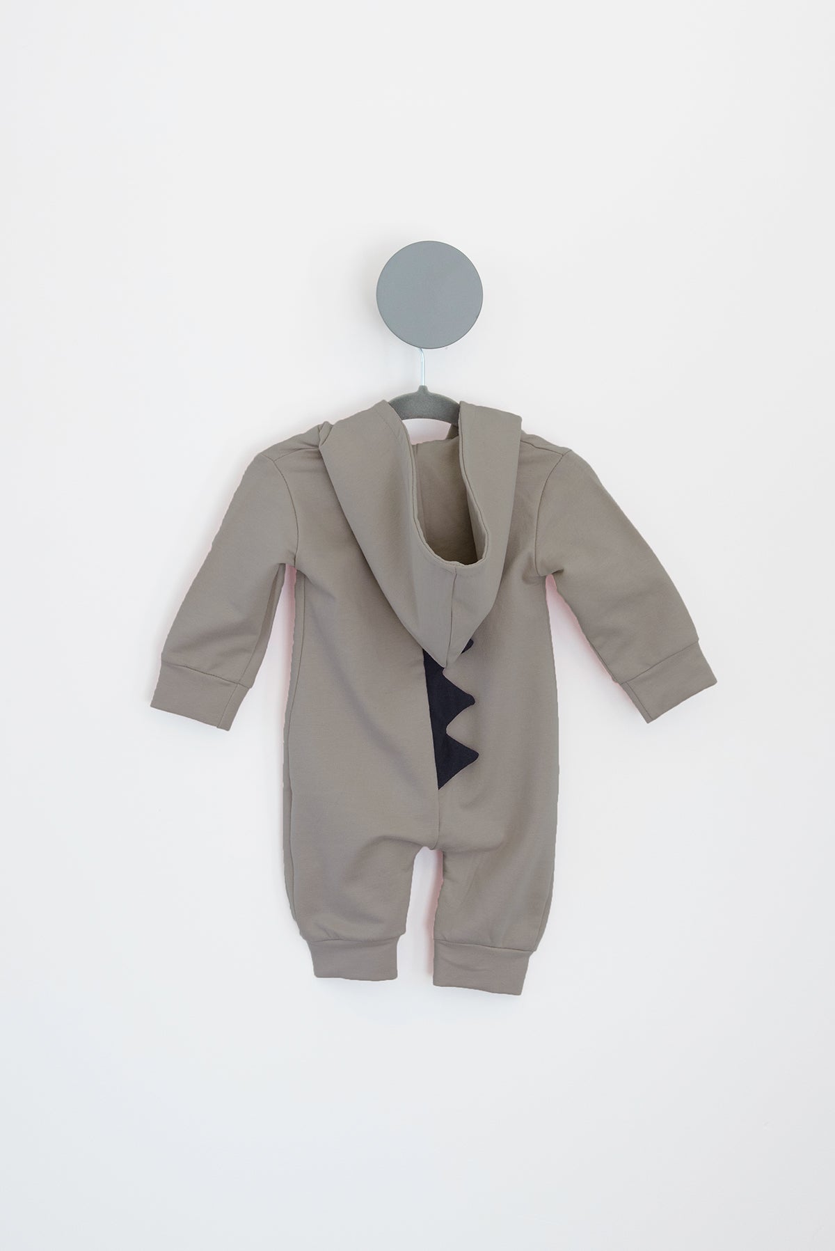 This adorable onesie features a navy contrast dinosaur back and hoodie. Made from 100% cotton.