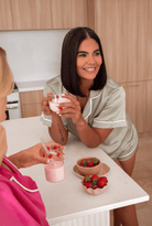 Hello MATCHA! Using our classic Summer W. The Enemy short sleeve top w. drawstring shorts in limited edition matcha can be made extra personal w. your choice of name, initials or emoji embroidery.